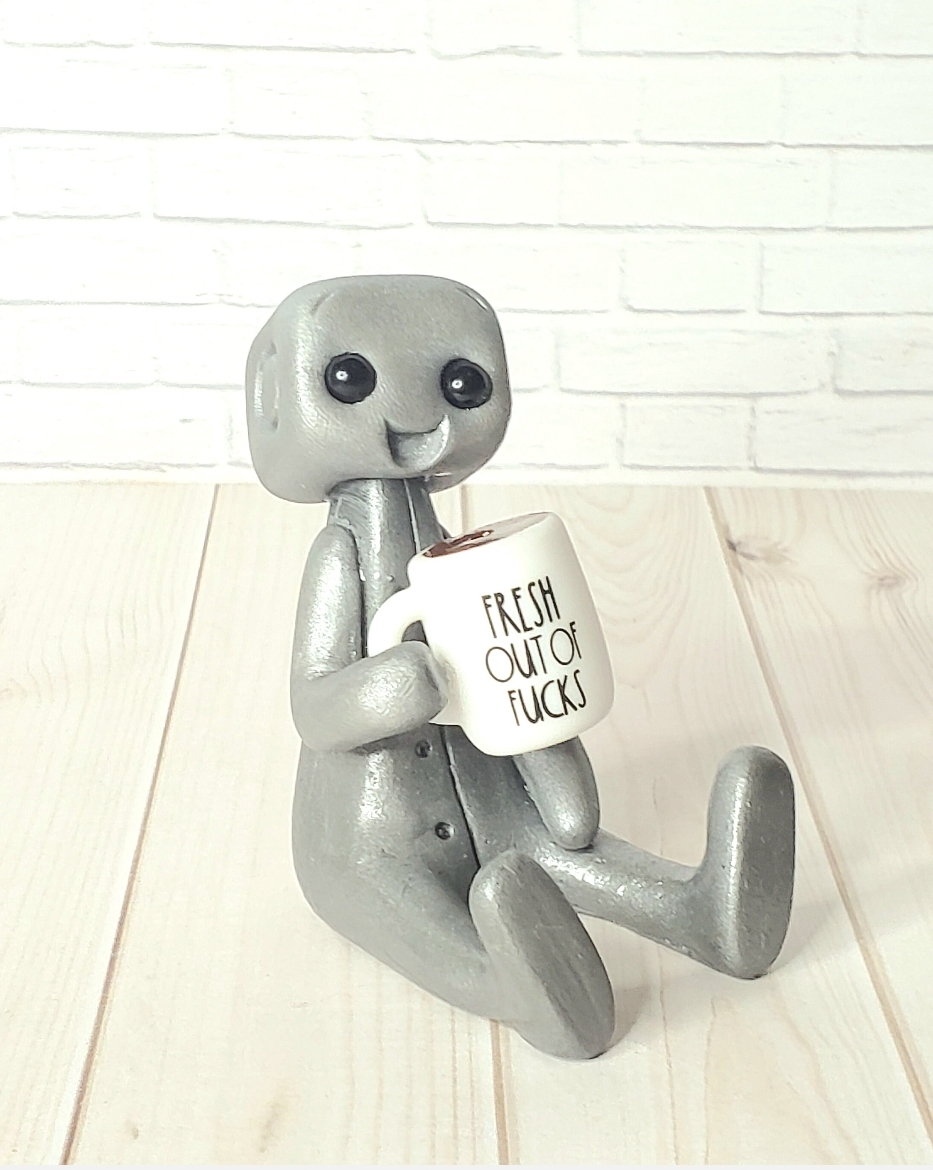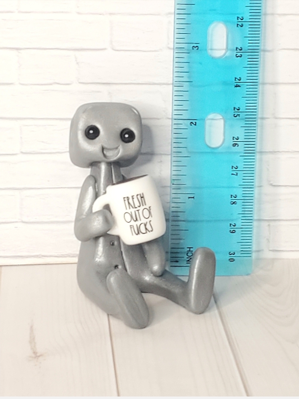 Fresh Out Of F**ks Robot Figure Resin Art Toy Mental Health Kawaii Desk Buddy