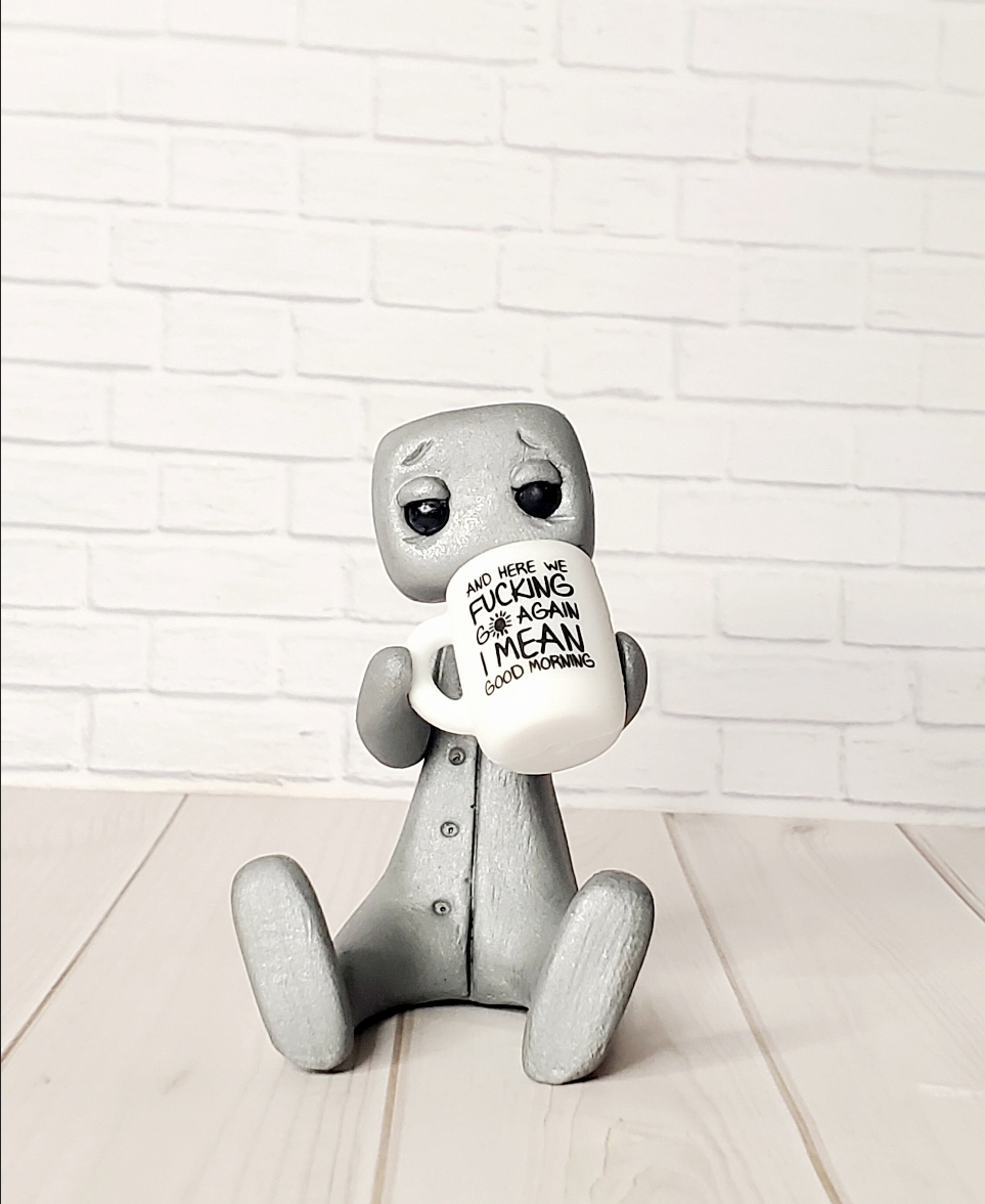 Good F'ing Morning! Robot Figure Resin Art Toy Mental Health Kawaii Desk Buddy