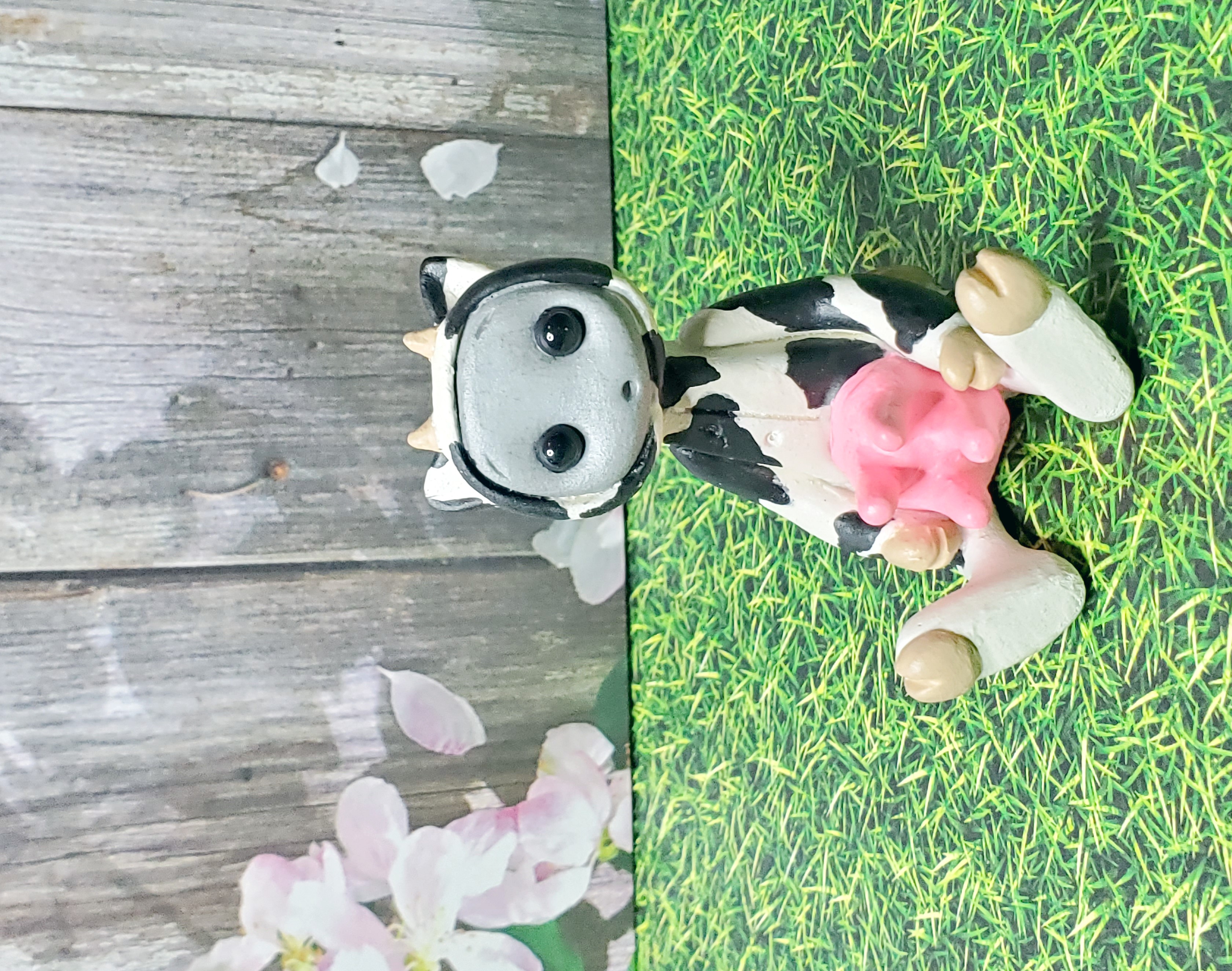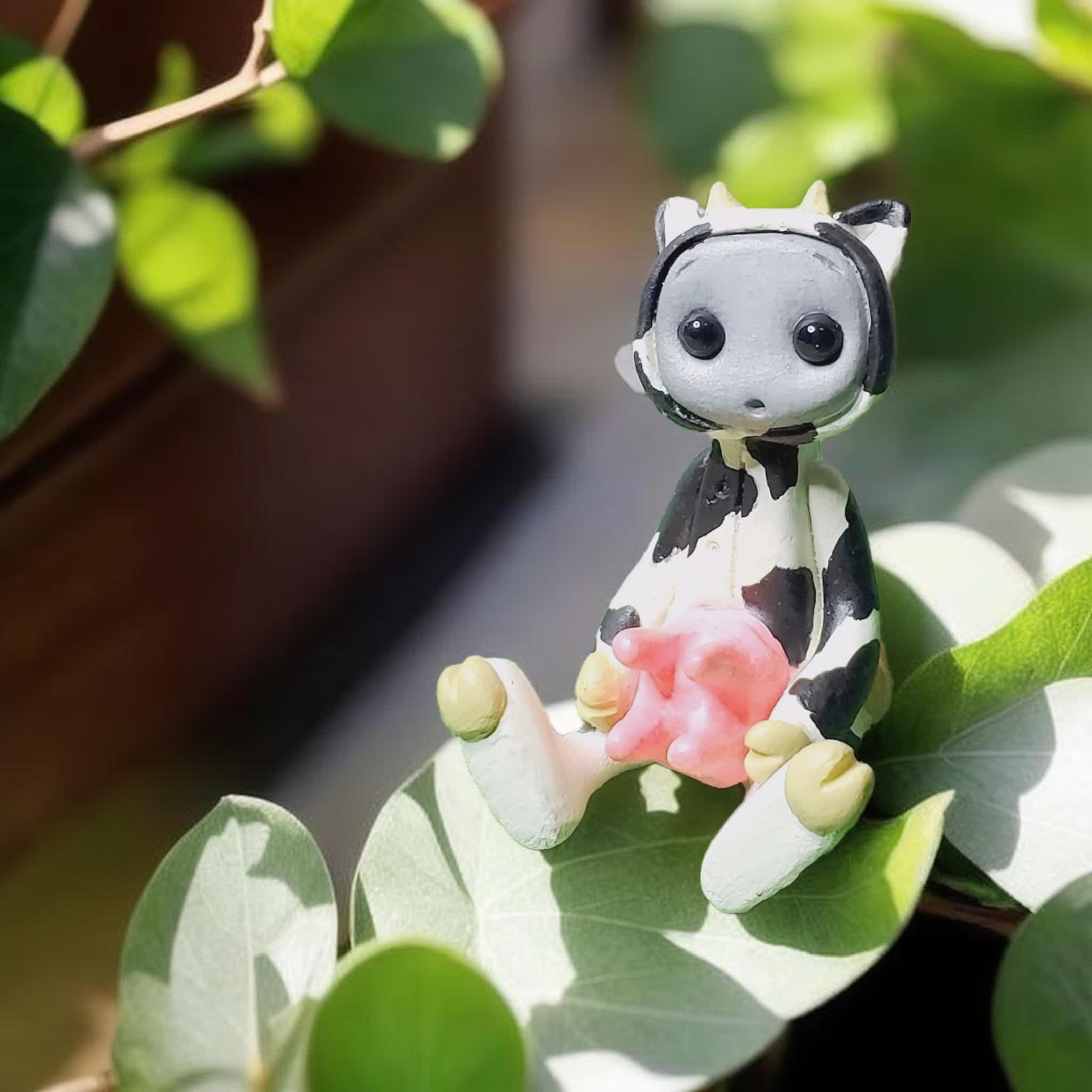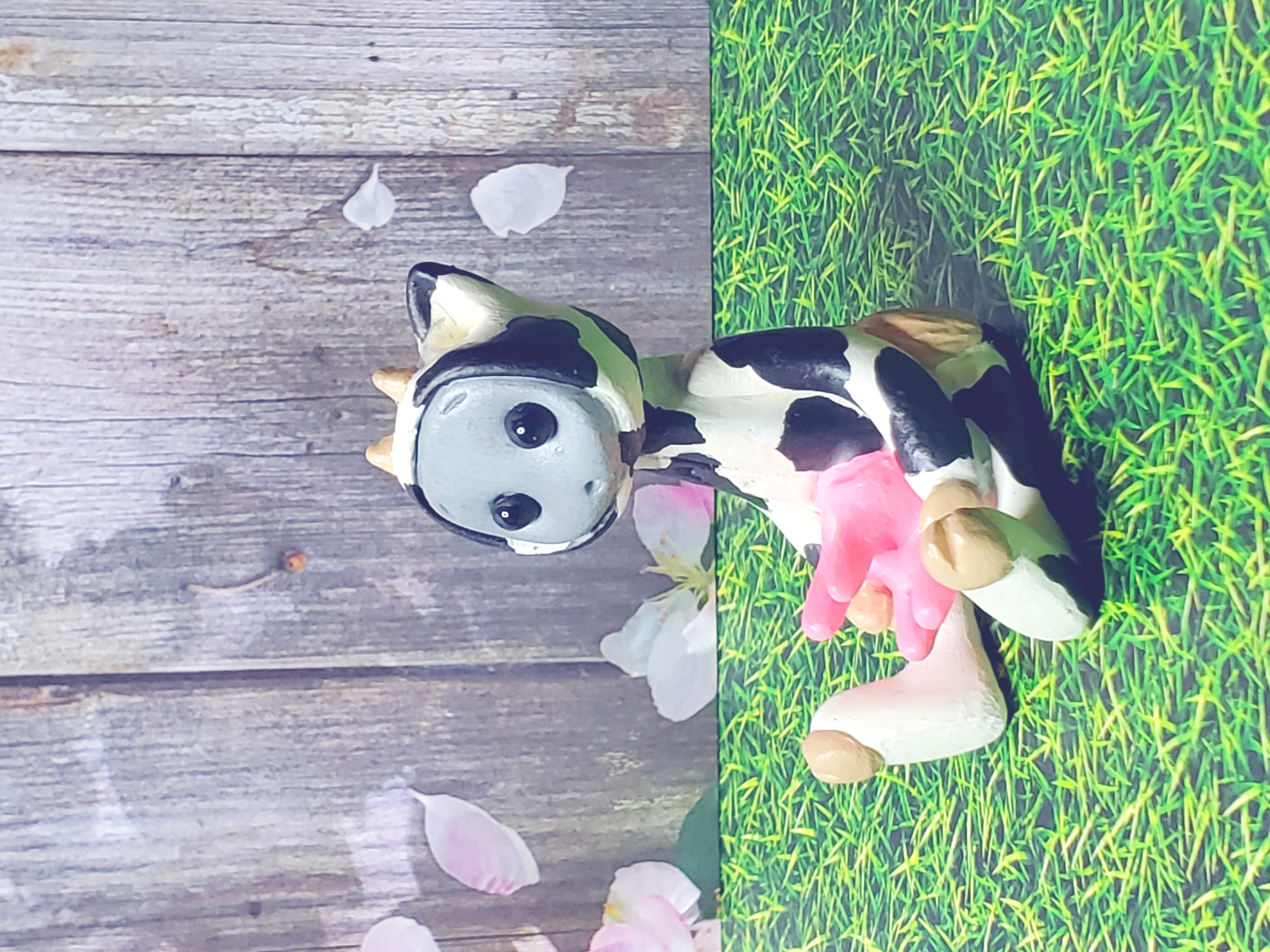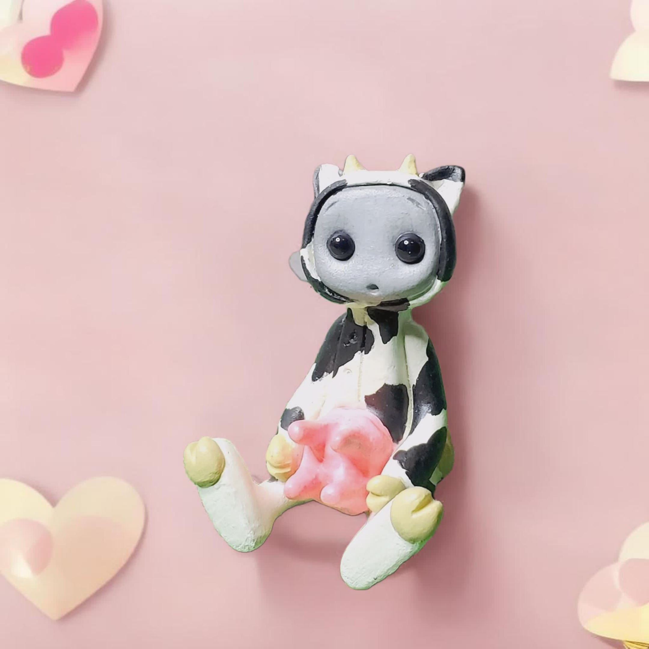 Spread joy with this utterly moo-tivating handmade serotonin decor! Meet our charming kawaii chibi resin robot, dressed in a delightful cow costume. A whimsical addition to your collection that's sure to 'moo've hearts and lift spirits! 🐮✨