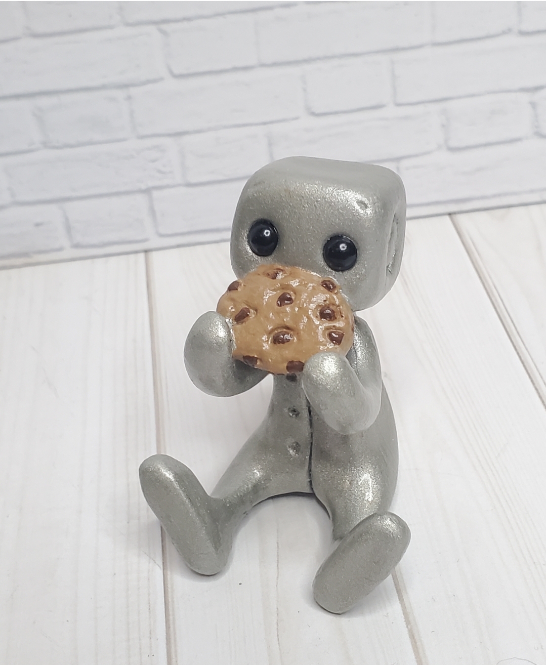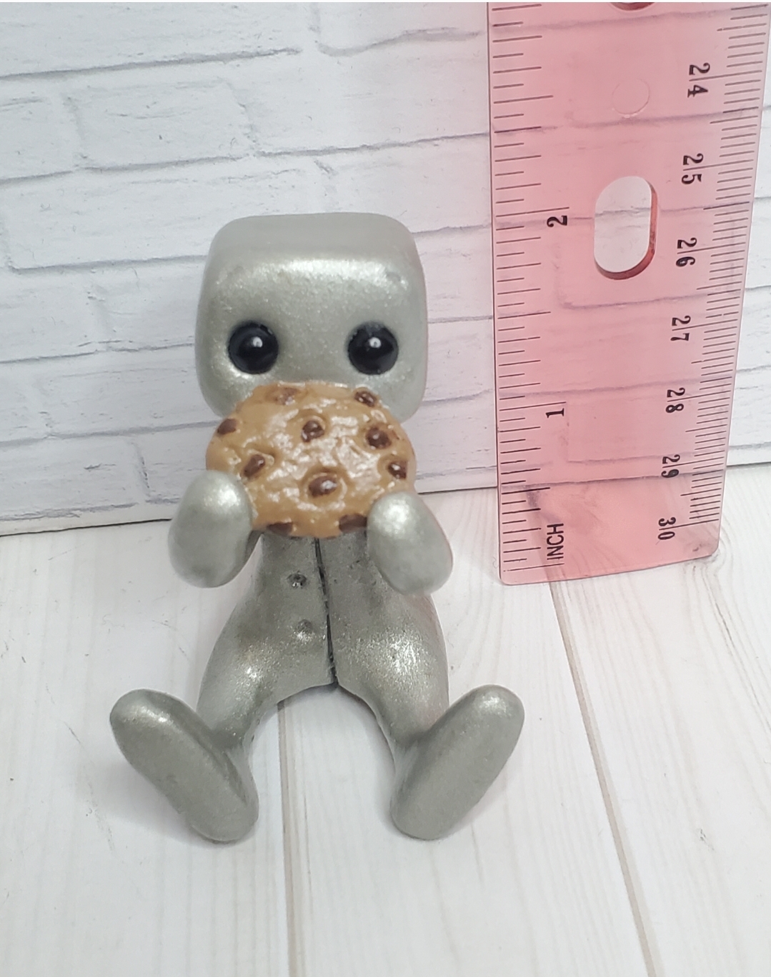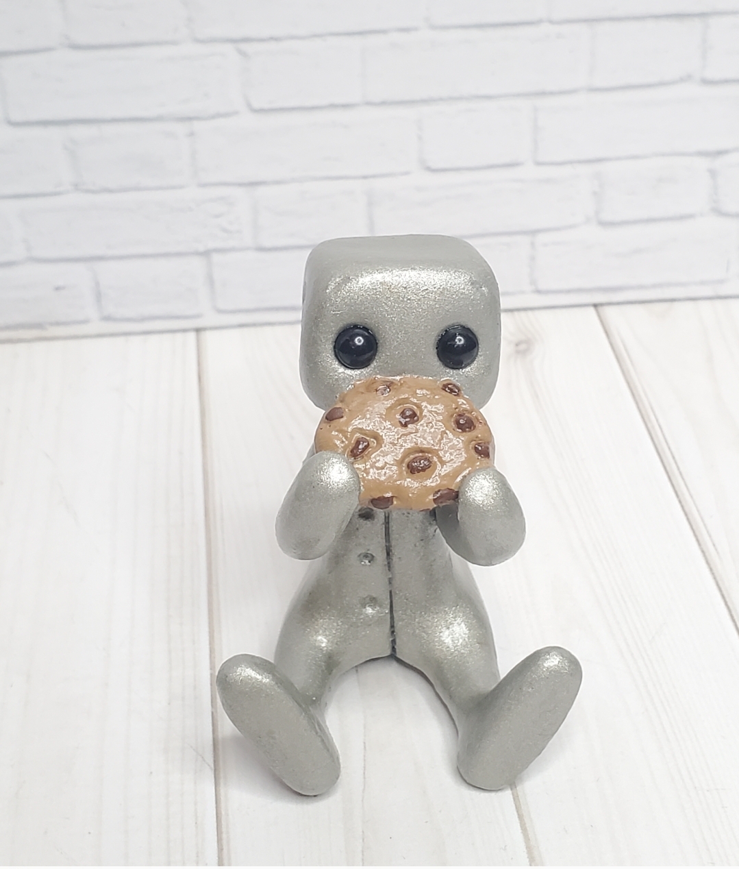 Bring joy to your surroundings with this unique serotonin-boosting collectible – a delightful chibi kawaii robot figurine, lovingly crafted and munching on a delicious cookie