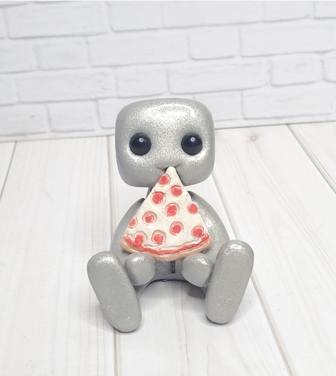 Pizza Party Robot Resin Figurine Kawaii Desk Buddy