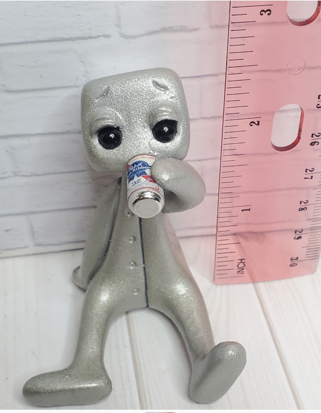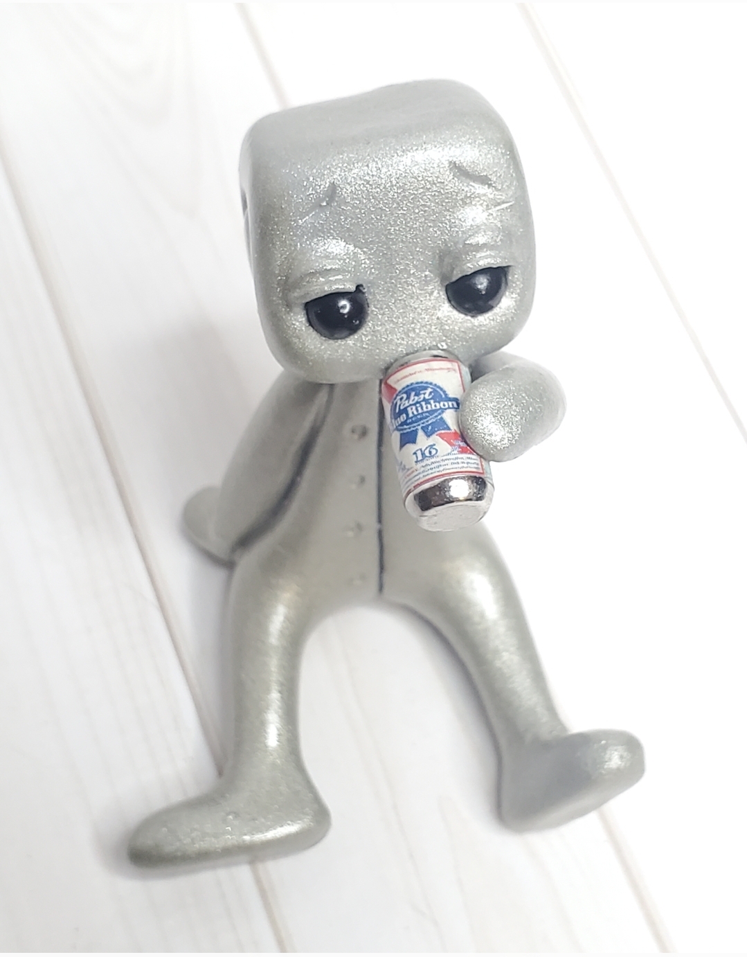 After a hard days work this little robot likes to relax with a cold one...or two... or maybe the whole 6 pack...
