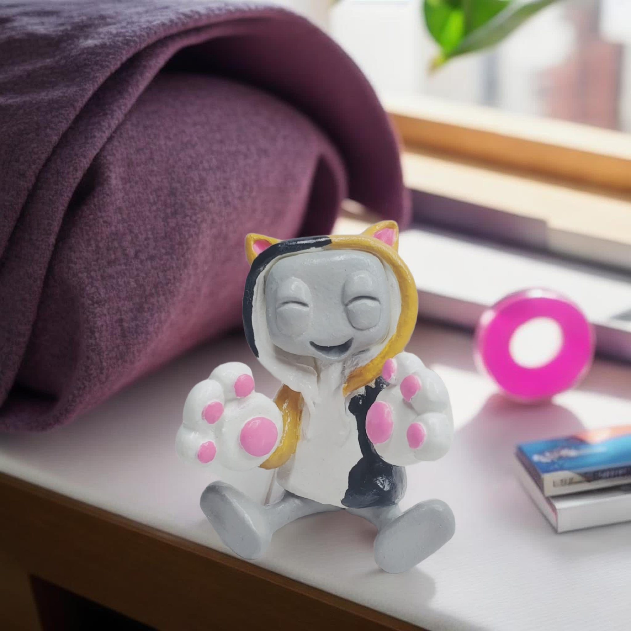 Boost your serotonin levels with this adorable handmade resin robot – a purr-fect blend of cute, kawaii, and chibi charm, sporting a cat hoodie!
