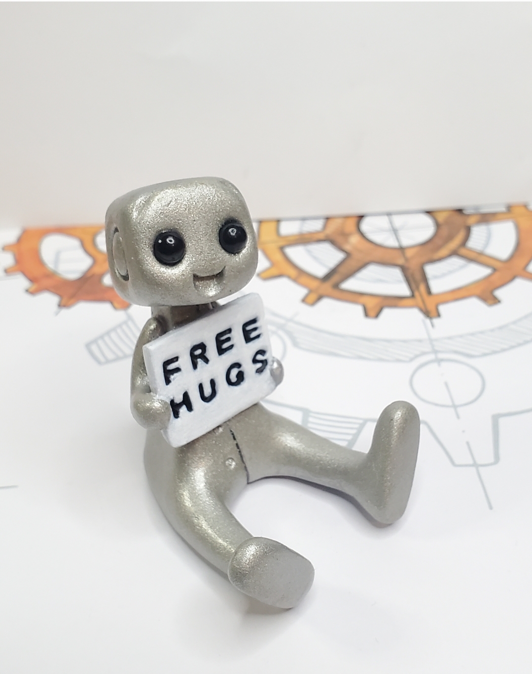Free Hugs Robot Figurine Resin Art Toy Kawaii Desk Decor