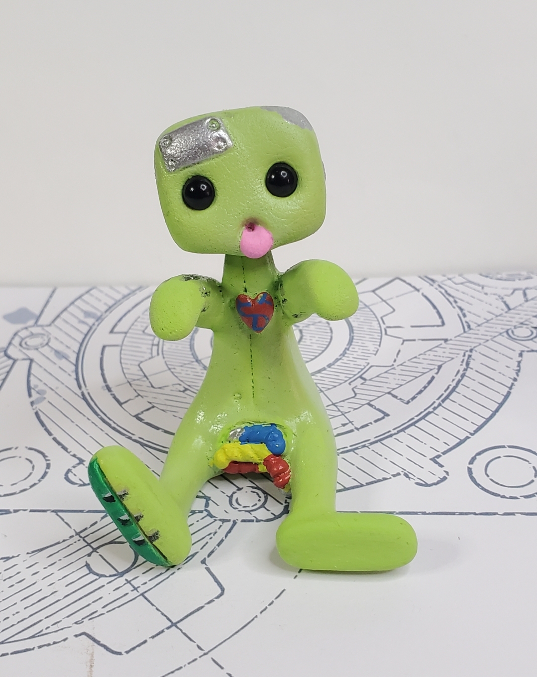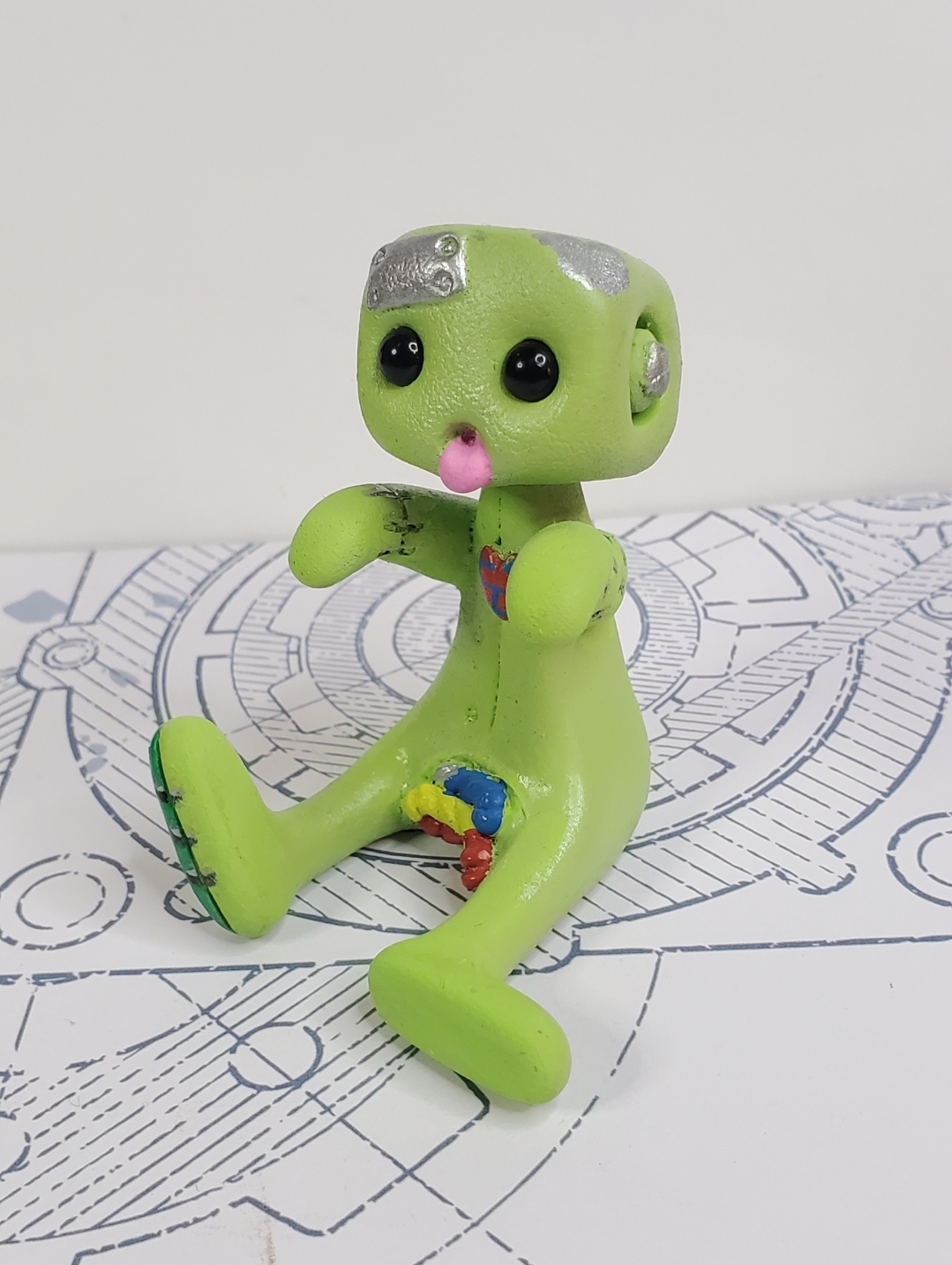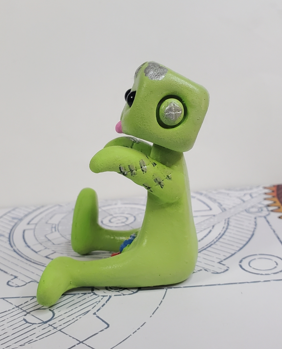 Zombie Robot (Green) Resin Art Toy Figure Kawaii Desk Friend Gift